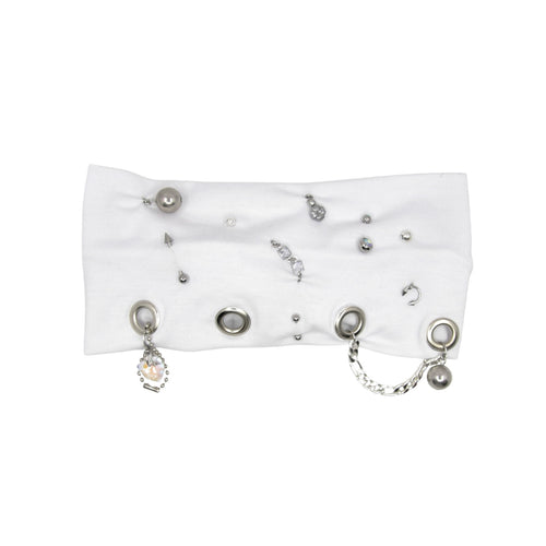 Completely one of a kind headbands made of a super soft Jersey fabric and bejewelled with up-cycled elements and removable charms!